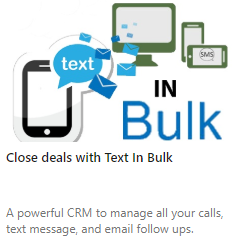 Text in Bulk is a platform that allows you to easily send and receive text message from computer, pre-recorded, and live phone calls from your browser. It also has in built lead generation